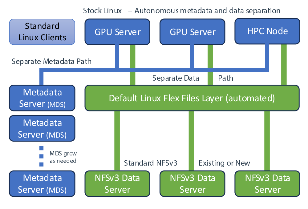 - Standards: pNFS Flex Files, RDMA, NVMe, CXL ready